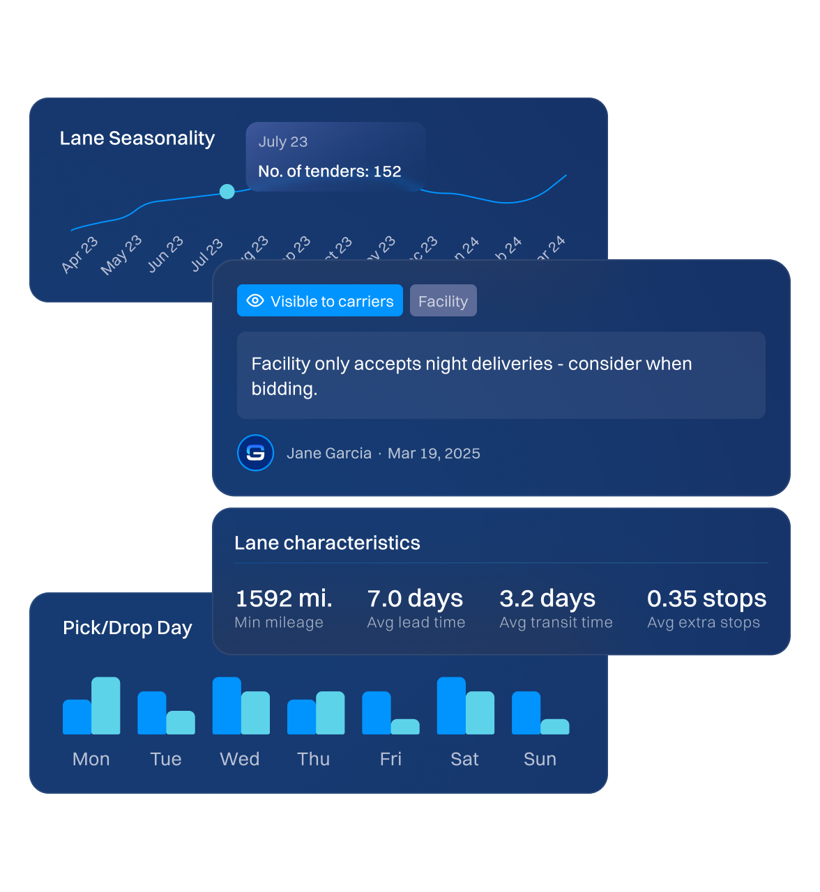 By automatically leveraging your historical network data already in GoodShip, carriers can see lane-specific details like lead time, seasonality, and average pickup/drop-off days.