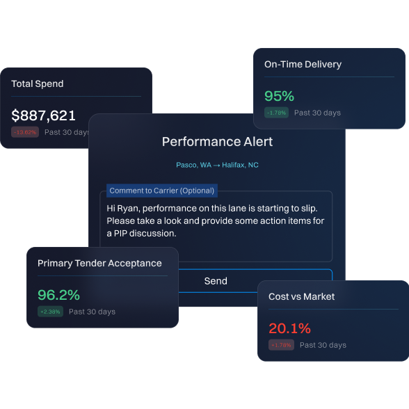 Send performance alerts, initiate rate renegotiations, and manage and resolve late load disputes directly from the platform.